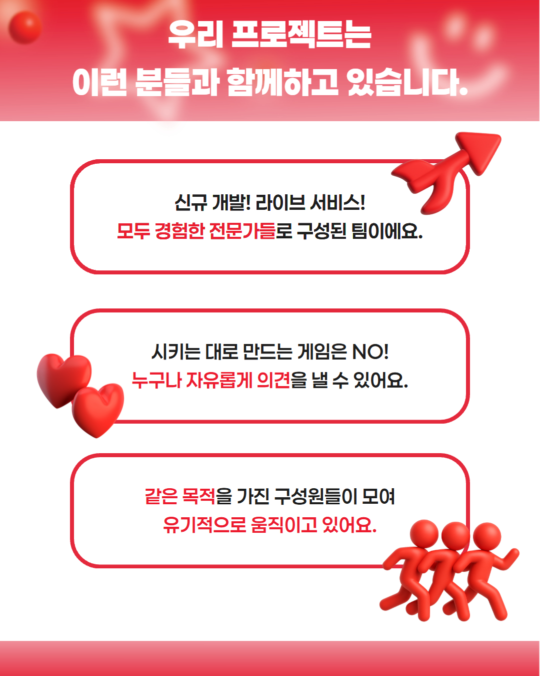 정해진 틀에서 만드는 게임은 NO! 누구나 자유로운 의견을 낼 수 있는 팀!