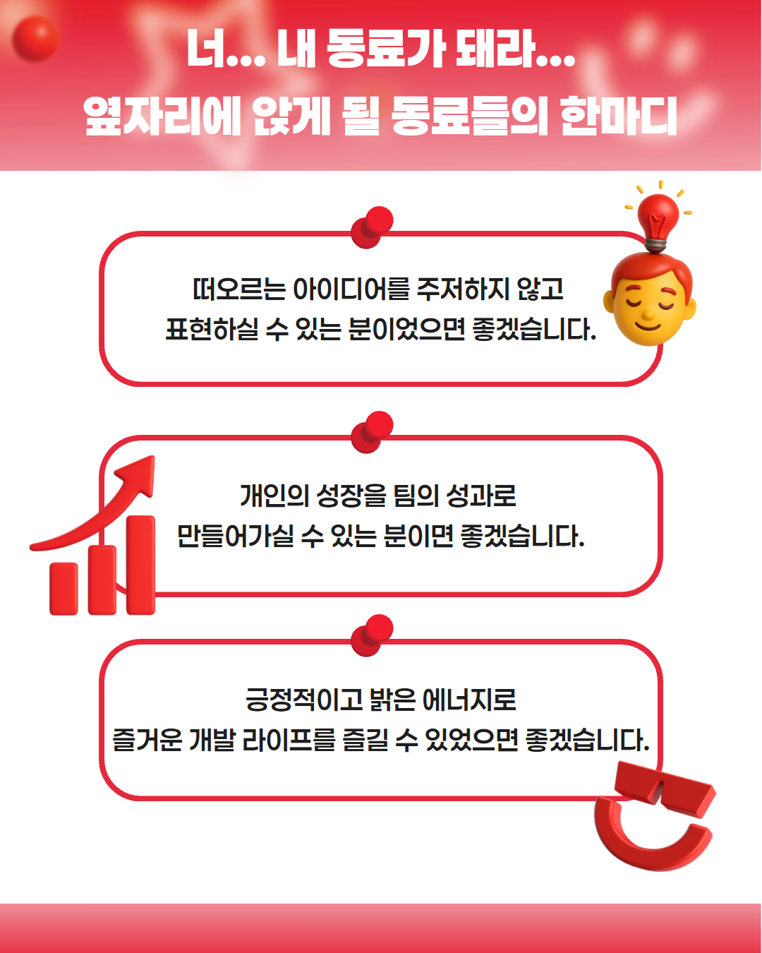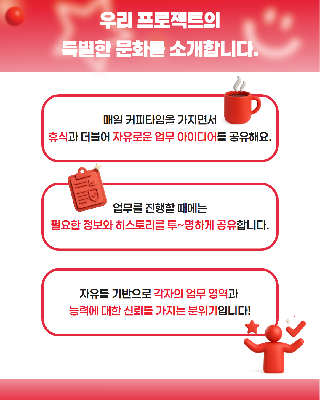 그렇다면 누구보다 능동적으로 일할 수 있는 이 팀의 동료가 되어보세요!