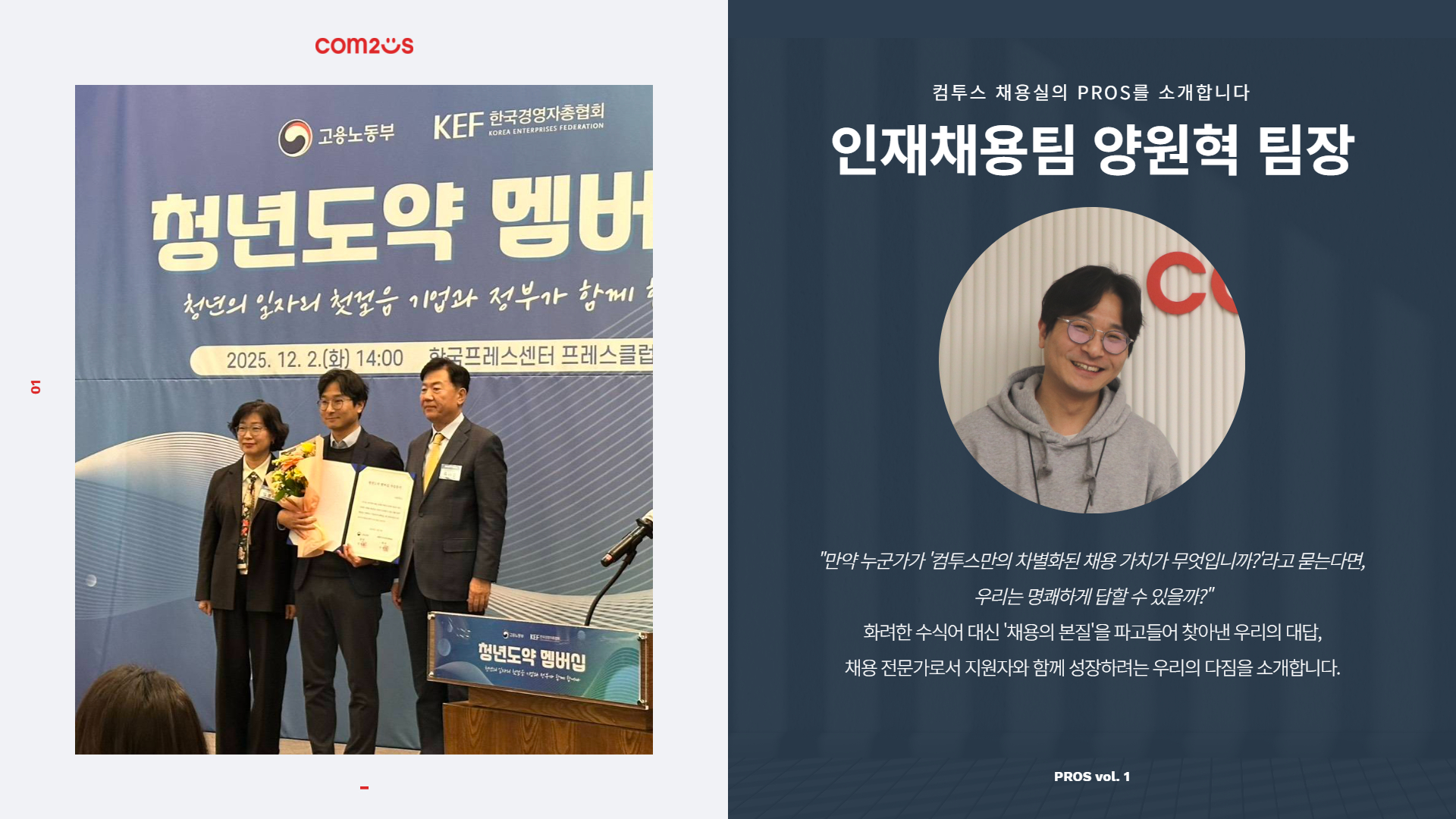 지원자의 전문성을 알아보고(Professionalism), 그들의 장점(Pros)이 빛날 수 있도록 도우며, 진심을 다해 소통하는 채용 전문가(PRO)가 되는 것. ”Com2uS PROS’는 여러분을 향한 우리의 약속입니다.