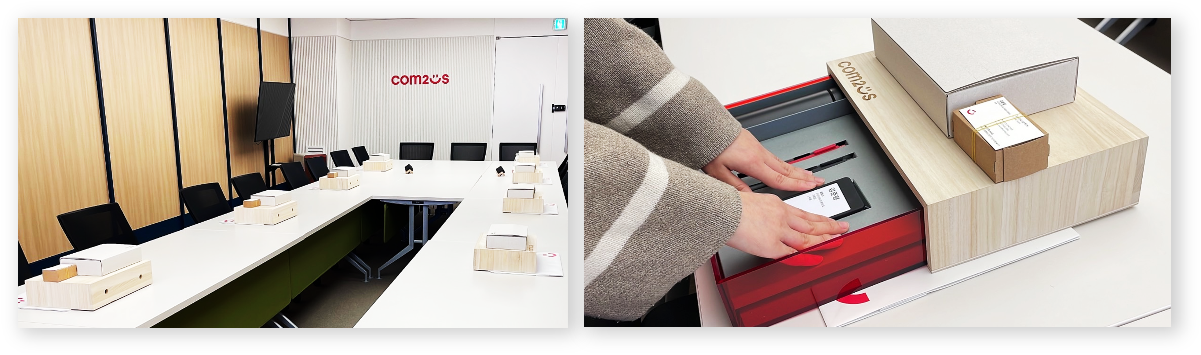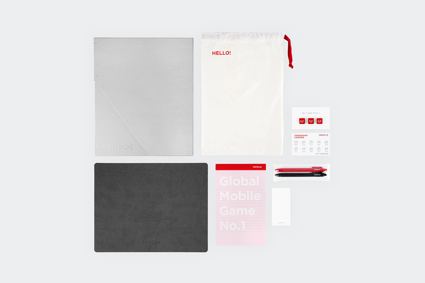 오리엔테이션 책상에 놓인 웰컴키트가 입사 첫 날의 첫인상 형성의 주요 요소라 생각하여 컴투스 채용실은 웰컴키트 제작에 진심으로 임합니다. 채용실 전 팀원은 물론 옆 부서 팀원들까지 모여서 구성품 별로 꼼꼼하게 선호도를 조사하고 기획을 통해 탄생합니다.